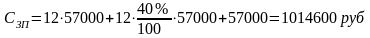 где: СЗП – годовой фонд заработной платы зависящий от метода обслуживания, штата должностных лиц и окладов, с учётом средств материального поощрения в размере 40 % от ФЗП.