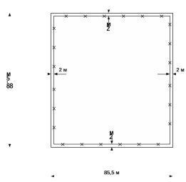 Площадь заземляющего контура S принимается по плану открытой части тяговой подстанции, сохраняя при этом расстояние от границы контура до ограждения не менее 2 м.