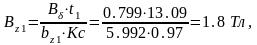 = 1.82 Тл – допустимая индукция в зубце статора.