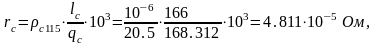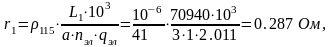 - удельное сопротивление стержня и короткозамыкающего кольца для литой алюминиевой обмотки ротора при расчетной температуре 115оС;