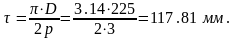 для двигателя с внутренним диаметром статора D = 225 мм принимаем