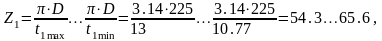 - предельные значения зубцового деления статора, которые определяются из промежутка