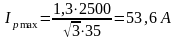 Максимальный рабочий ток сборных шин и секционного выключателя 35кВ, согласно [1]
