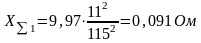 + ХТН2 = 0,091 + 0,146 = 0,237 Ом