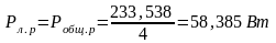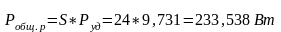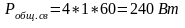 N - количество светильников в помещении, N=4; n - число ламп в светильнике, n=1; Р - мощность светильника, Р=60.