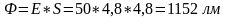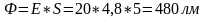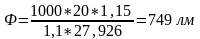 Световой поток источника света в каждом светильнике рассчитываем по формуле: