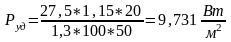 Так как коэффициент запаса Кз=1,15 не совпадает с табличным (Кзт=1,3), то производим пропорциональный пересчёт удельной мощности по формуле: