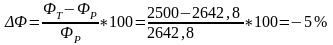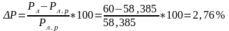Рассчитываем отклонение общей мощности от расчётной мощности: