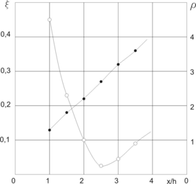 Рисунок 1.3.1Графики зависимостей ξ и ρ от отношения x/h