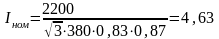 - номинальный ток электроприемника, А;