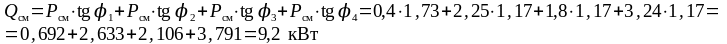 Р9,10,11=18 кВт, kи = 0,06, cosφ = 0,65; tgφ = 1,17