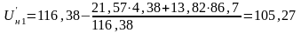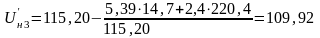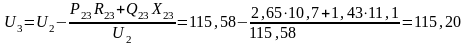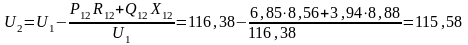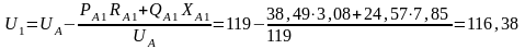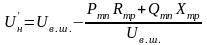 Напряжение на шинах низшего напряжения ПС, приведенное к стороне высшего напряжения, можно получить, если из напряжения вычесть падение напряжения в трансформаторе (также без учета поперечной составляющей падения напряжения):