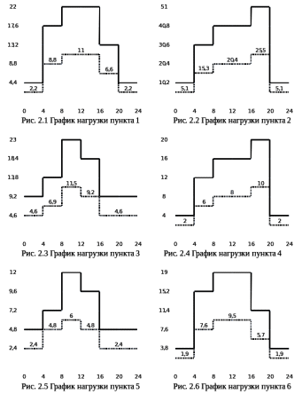 - максимальная зимняя нагрузка. Построим графики нагрузки для каждого из пунктов в именованных единицах:.