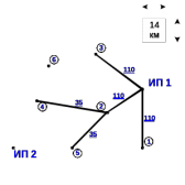 На рисунке 1 представлена схема сети до реконструкции, новые пункты и источник.