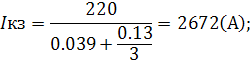 Для трансформатора ТМ 630 10/0,4 Zтр = 0.13 Ом, тогда