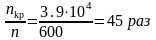 Рабочая частота вращения ротора отличается от критической более чем 45 раза.
