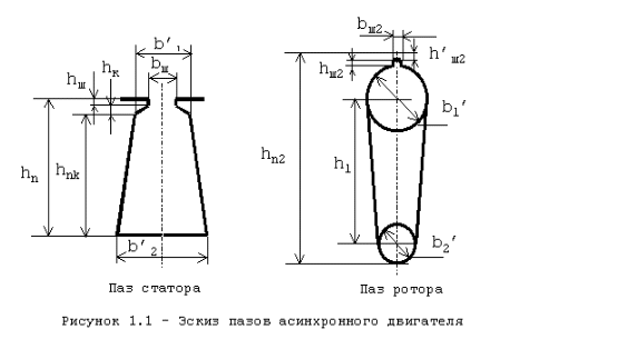 =4 мм [1, c. 295-296]. Приведённые расчёты выполнены для трапециидального паза. Форма паза статора представлена в графической части проекта.