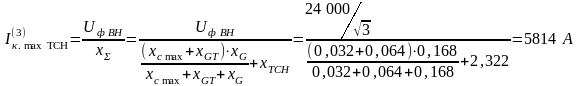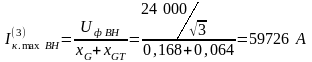 Так как в цепи генераторного напряжения установлен выключатель нагрузки, то в качестве расчётного принимается короткое трехфазное металлическое замыкание на выводах ВН трансформатора блока. Максимальный первичный ток, проходящий через защищаемый трансформатор в этом режиме и приведённый к стороне ВН блока, составляет: