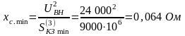 Индуктивная составляющая сопротивления сети в минимальном режиме, приведённая к стороне высшего напряжения: