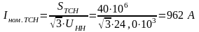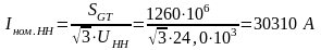 Номинальное значение первичного тока на стороне низкого напряжения энергоблока 24 кВ: