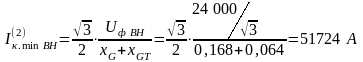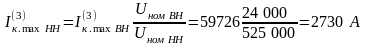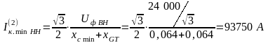 Минимальное значение тока короткого двухфазного замыкания на выводах НН трансформатора в минимальном режиме работы энергосистемы и при отключённом генераторе составляет: