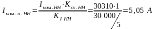 Вторичный ток в плече защиты на стороне низшего напряжения, соответствующий номинальной мощности защищаемого трансформатора, составляет: