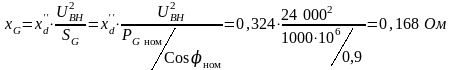 Значение индуктивной составляющей сопротивления генератора энергоблока, приведённое к стороне высшего напряжения: