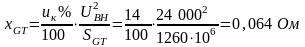 Значение индуктивной составляющей сопротивления трансформатора энергоблока, приведённое к стороне высшего напряжения: