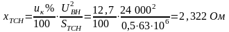 Значение индуктивной составляющей сопротивления трансформатора собственных нужд энергоблока, приведённое к стороне высшего напряжения: