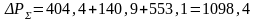 ΔР1÷38 = 12828,2 + 1711,7 = 14539,9 Па.