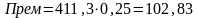 где КПРЕМ – коэффициент премии, принимается равным 25,%;