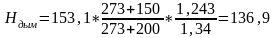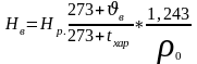 Пересчитываем напор на температуру перемещаемой среды, указанную в каталоге, Hдым, мм вод.ст по формуле