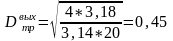 Принимаем стандартный диаметр устья дымовой трубы 1,2 м.