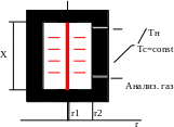 Тогда, математическая модель температурного поля в газовой смеси, омывающей нить запишется в виде: