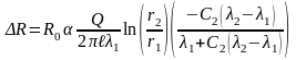 Дополним это уравнение зависимостью перепада температур от теплопроводности газовой смеси. В результате получим систему из двух нелинейных уравнений с двумя неизвестными T и r2.
