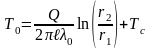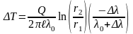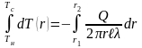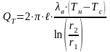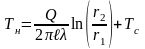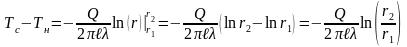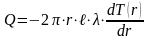Тепловой поток Q на расстоянии r от оси нити определяется по закону Фурье: