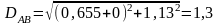 Определяем расстояния между фазными проводами DAB, DBC, DAC и средне - геометрические расстояния между фазными проводами Dф для каждой воздушной линии.