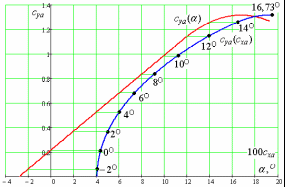 с разметкой углов атаки на ней (рисунок 3.1 и рисунок 4, где кривая 6 - вспомогательная поляра).