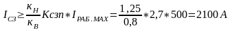 Iс.о. >= 1,25 • I К5 = 1,25 • 1751 = 2188,75 А.