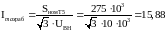Ток двухфазного короткого замыкания на выводах низкого напряжения, приведенный к высокому напряжению трансформатора:
