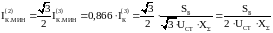 При определении минимальных токов КЗ рассматриваем минимальный режим работы энергосистемы (SК.МИН и соответственно сопротивление системы ХС.МИН) при максимальных сопротивлениях рассматриваемой схемы электроснабжения ХТ.МАКС и ХЛ.МАКС. Кроме того, рассчитывается не ток трехфазного КЗ, а двухфазного, поскольку последний по величине меньше.