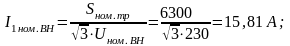 Знаходимо первинний струм на сторонах трансформатора, що захищається, відповідно його номінальній потужності