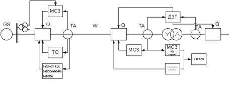 На підставі вище викладеного складаємо структурну схему захистів, що приведена на рис 3.1. шихтованими лініями зазначено на відключення яких вимикачів діє захист.