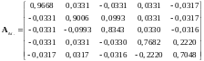 элементов. В этом случае матричные операторы основных элементов системы будут следующими (представлены подматрицы размерностью