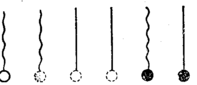 Схематично структуру молекул ліотропних рідких кристалів звичайно зображають в вигляді хвилястої лінії або відрізку прямої, що закінчуються кільцем або сферою (рис. 5.1.9), які позначають відповідно ланцюг і полярну групу.
