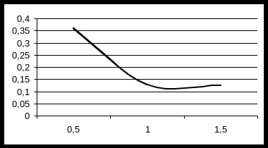 По мал. 6 знайдемо крапку, у якій значення критичної сили, що намагнічує, буде максимальним. Для забезпечення надійного спрацьовування реле необхідно ввести коефіцієнт надійності: