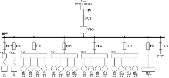 Составление структурных схем: принимаем радиальную схему питания электроприёмников. Радиальная схема в нашем случае наиболее полно удовлетворяет требованиям надёжности, простоты подключения электроустановок.