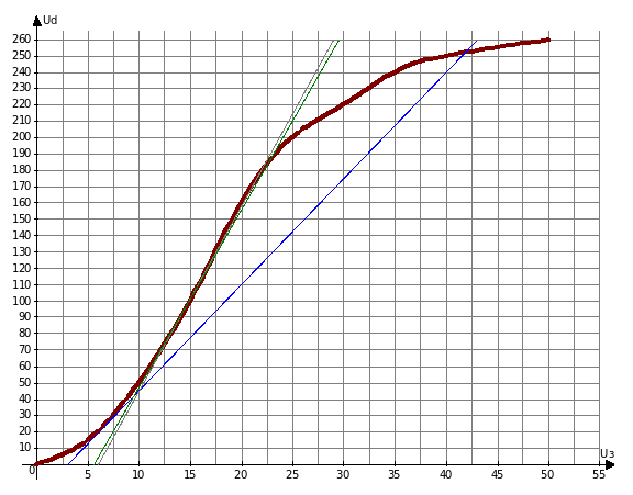 | Ud, В | 0 | 15 | 50 | 100 | 160 | 200 | 220 | 240 | 250 | 255 | 260 |
