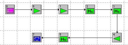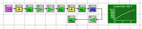 Расчет кривой переходного процесса n(t) по возмущающему воздействию может быть проведен моделированием на ЭВМ. Результатом моделирования получается график n(t) показывающего изменение параметра (оборотов двигателя) от nзад при воздействии возмущения Uc. Моделирование производится на ЭВМ в пакете PDS по следующей структурной схеме: