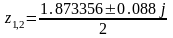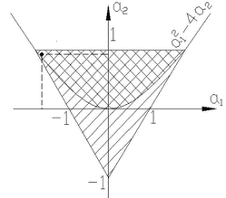 Т. к. точки (a1, a2) лежат в углу треугольника выше параболы, то корни характеристического уравнения мнимыми и ЦФ устойчив. Но как видно из рисунка устойчивость его мала, он находится почти на грани устойчивости.